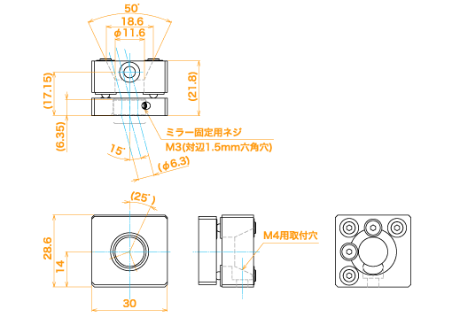 25°透過:光学部品の厚みが6.35tの時φ6(図示)